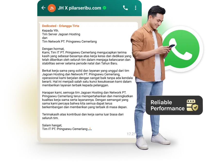 Kami telah dipercaya ratusan ribu pengguna di seluruh Indonesia untuk mengonlinekan bisnisnya sejak 2007 dengan menyediakan hosting, domain, cloud & VPS yang stabil dan mudah digunakan. Didukung dengan pelayanan oleh tenaga professional, menjadikan kami salah satu web hosting provider terbesar di Indonesia.