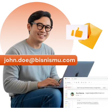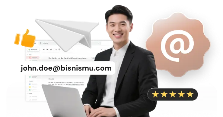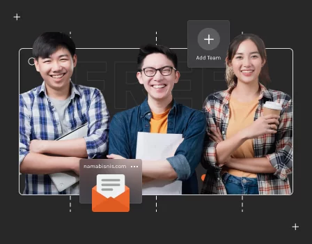 Lengkapi seluruh tim dengan email domain perusahaan, Personalisasi keseragaman email secara konsisten untuk komunikasi internal/eksternal tanpa biaya berlebihan.