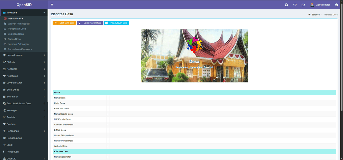 Informasi seperti jumlah penduduk atau data wilayah juga bisa ditampilkan secara otomatis sesuai data yang kamu input ke sistem.
