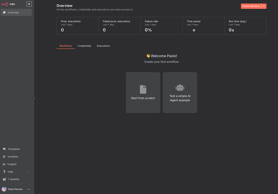 - Workflows: Tempat semua alur kerja tersimpan. Di sini kamu bisa membuat, mengedit, dan menjalankan workflow.