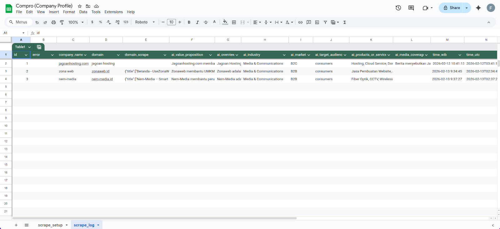 Hasil Scraping Compro
