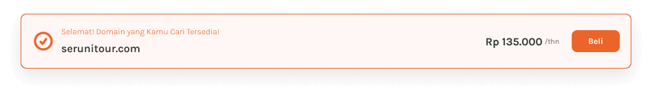 - Jika tersedia, akan muncul notifikasi “Selamat! Domain yang Kamu Cari Tersedia!”