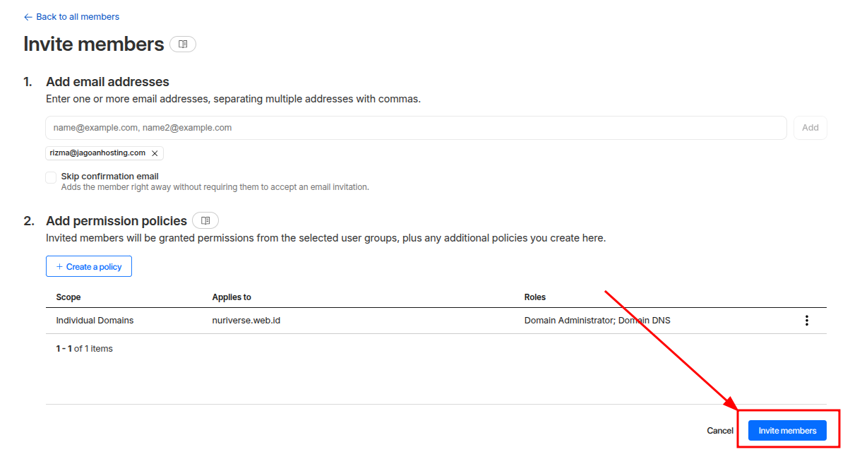- Invite Members: Masukkan satu atau lebih alamat email anggota yang akan diundang (gunakan koma untuk memisahkan jika lebih dari satu).