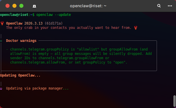 openclaw --update
