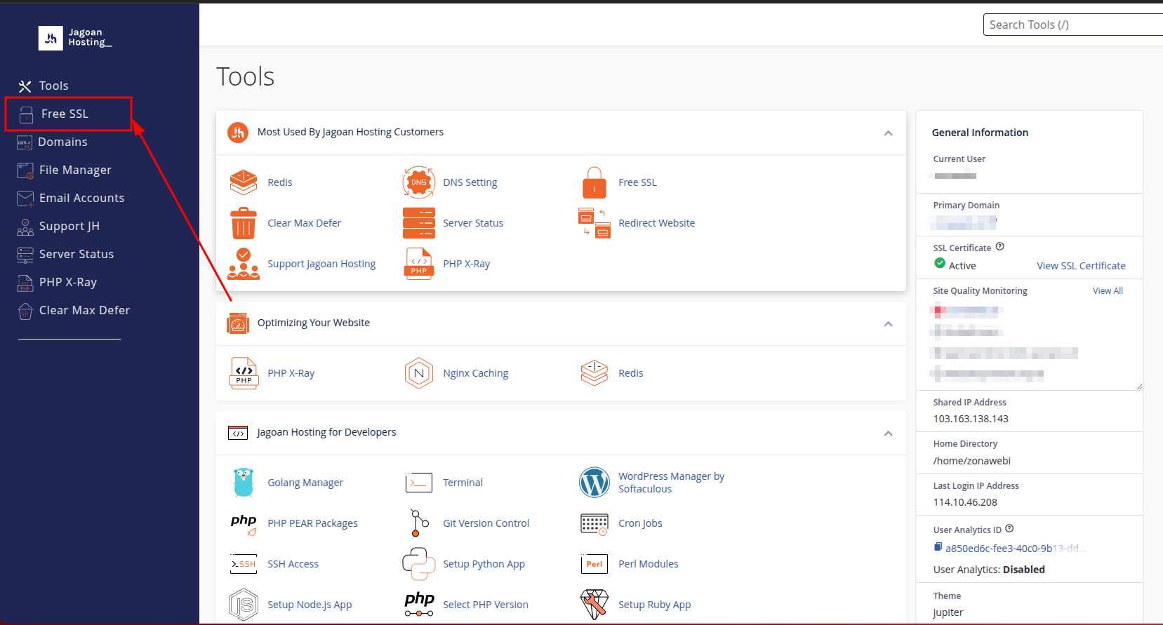 Jagoan Hosting sudah menyediakan fitur free SSL pada semua layanan hostingnya. Secara default fitur free SSL ini akan otomatis aktif dalam waktu maksimalnya 2 x 24 jam. Karena sistem Jagoan Hosting yang akan otomatis melakukan instalasi pada pukul 12.00 dan 00.00. Namun apabila Sobat ingin mempercepat proses instalasi Sobat bisa mengikuti langkah berikut :