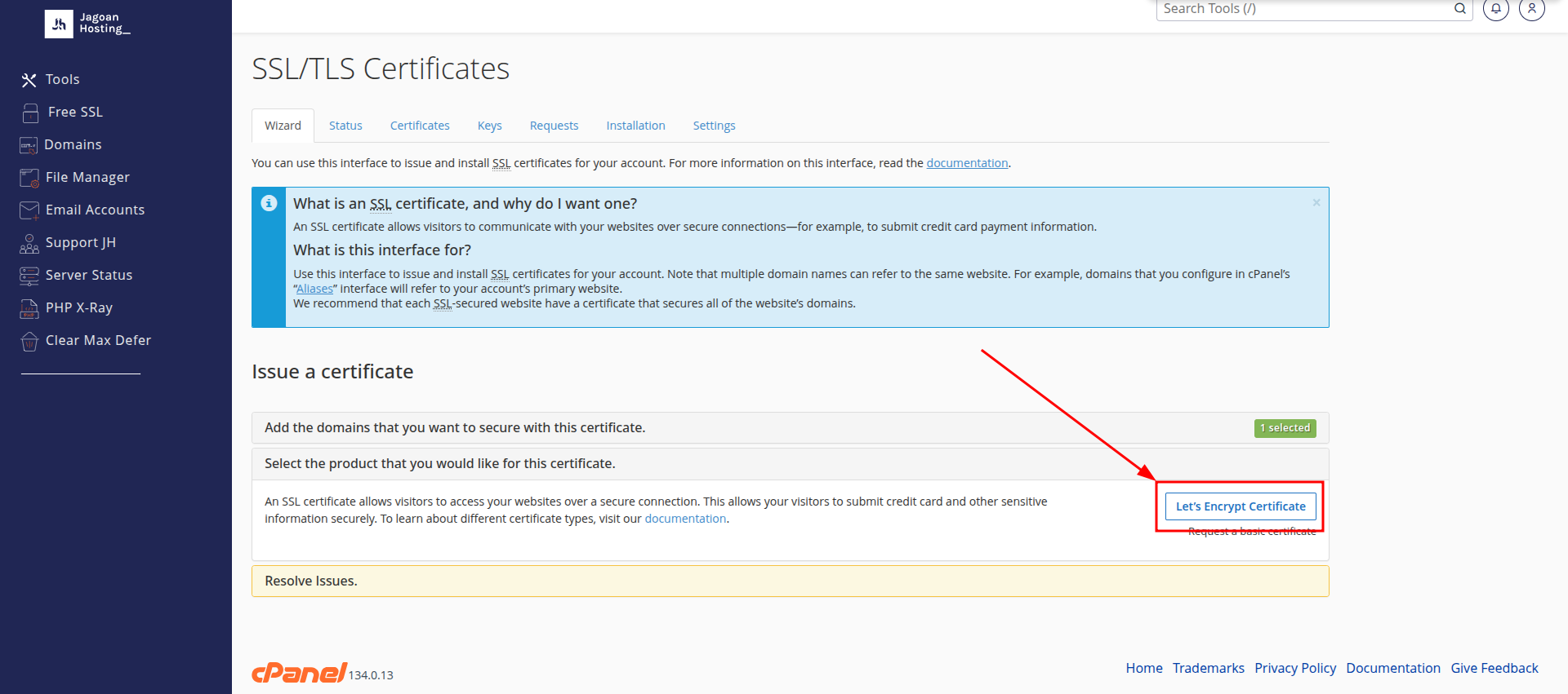 Selanjutnya klik button lets encrypt certificate