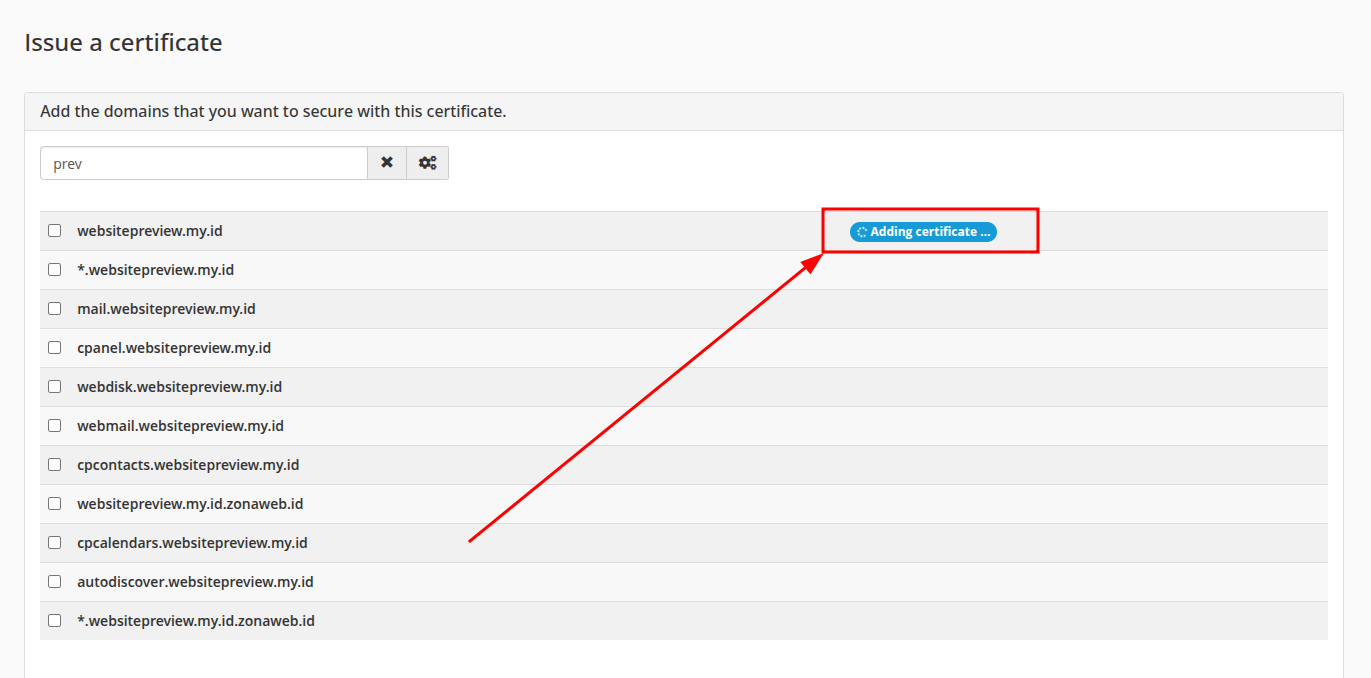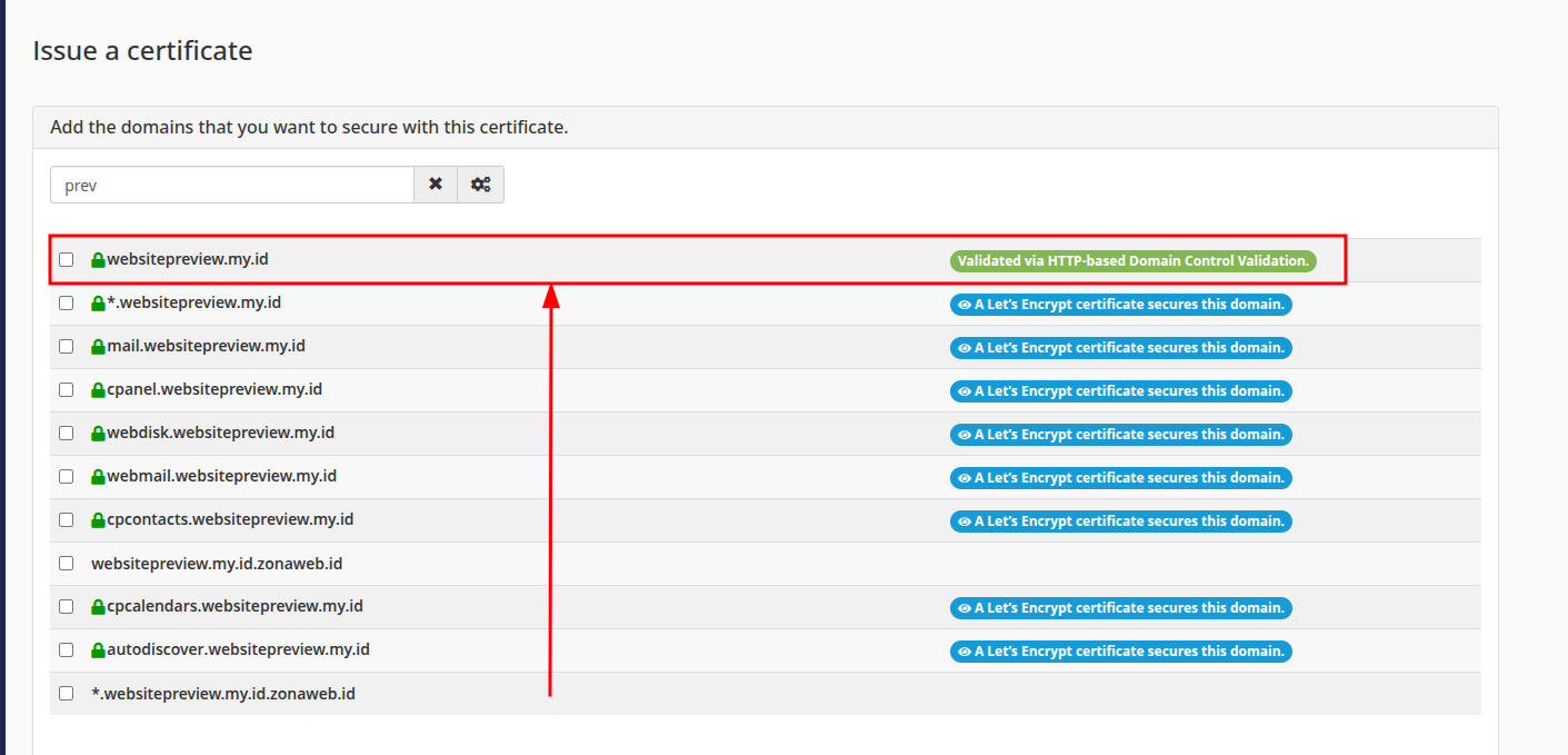Untuk mengaktifkan SSL, cari nama domain yang ingin diaktifkan SSLnya