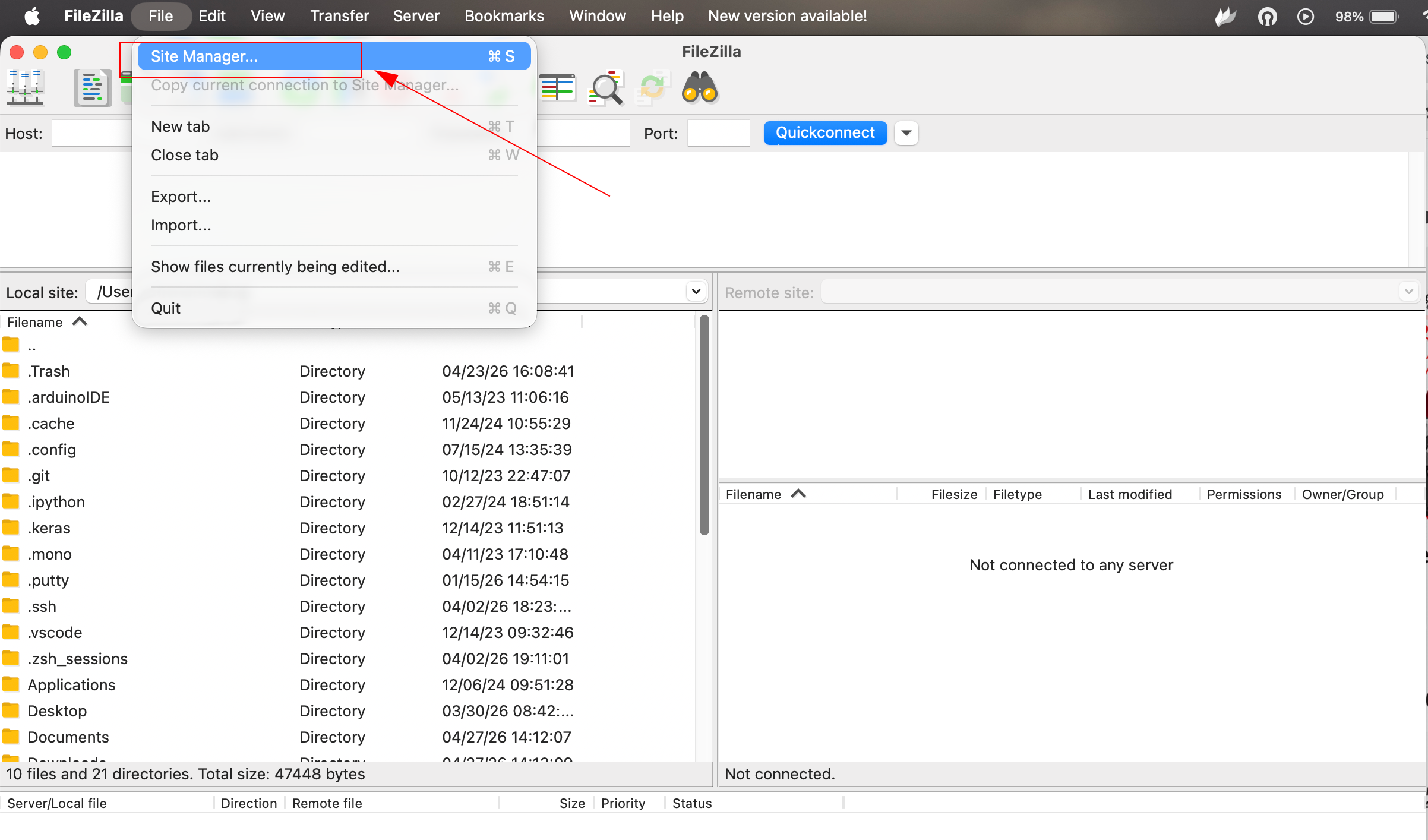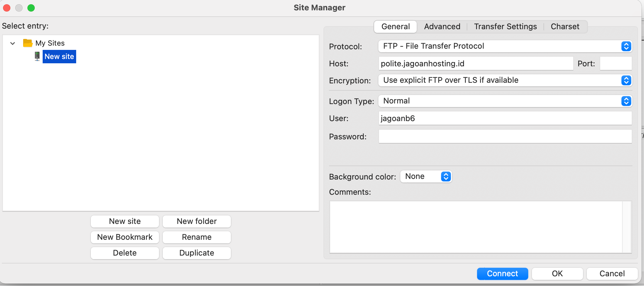 1.Untuk melakukan sFTP di FileZilla bisa Klik Edit > File > Site Manager > New Site