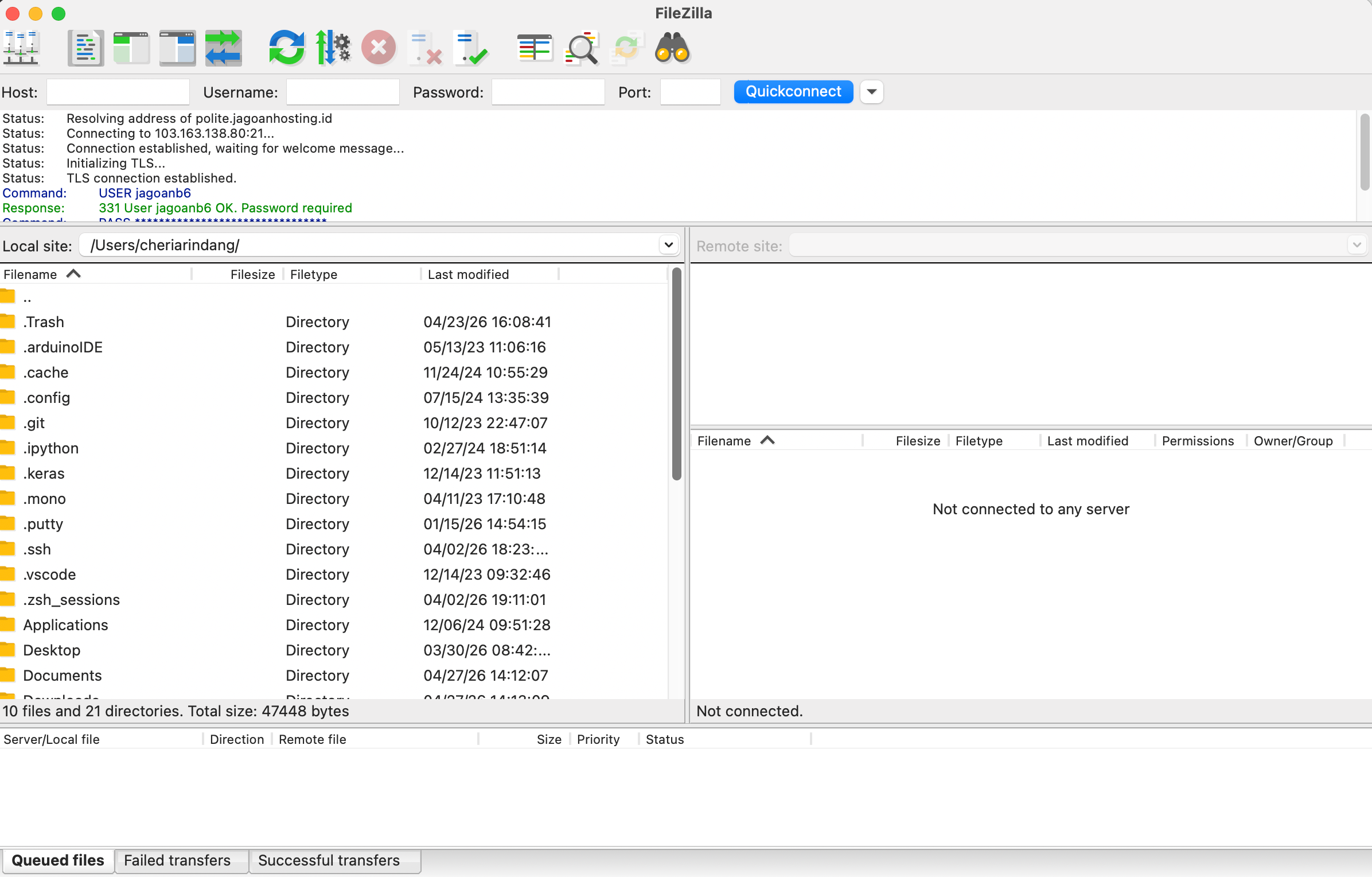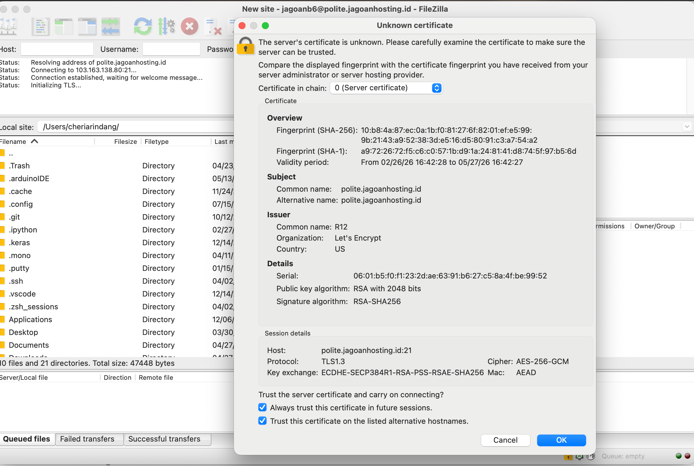 3. Jika sFTP berhasil, maka akan menampilkan tampilan seperti berikut