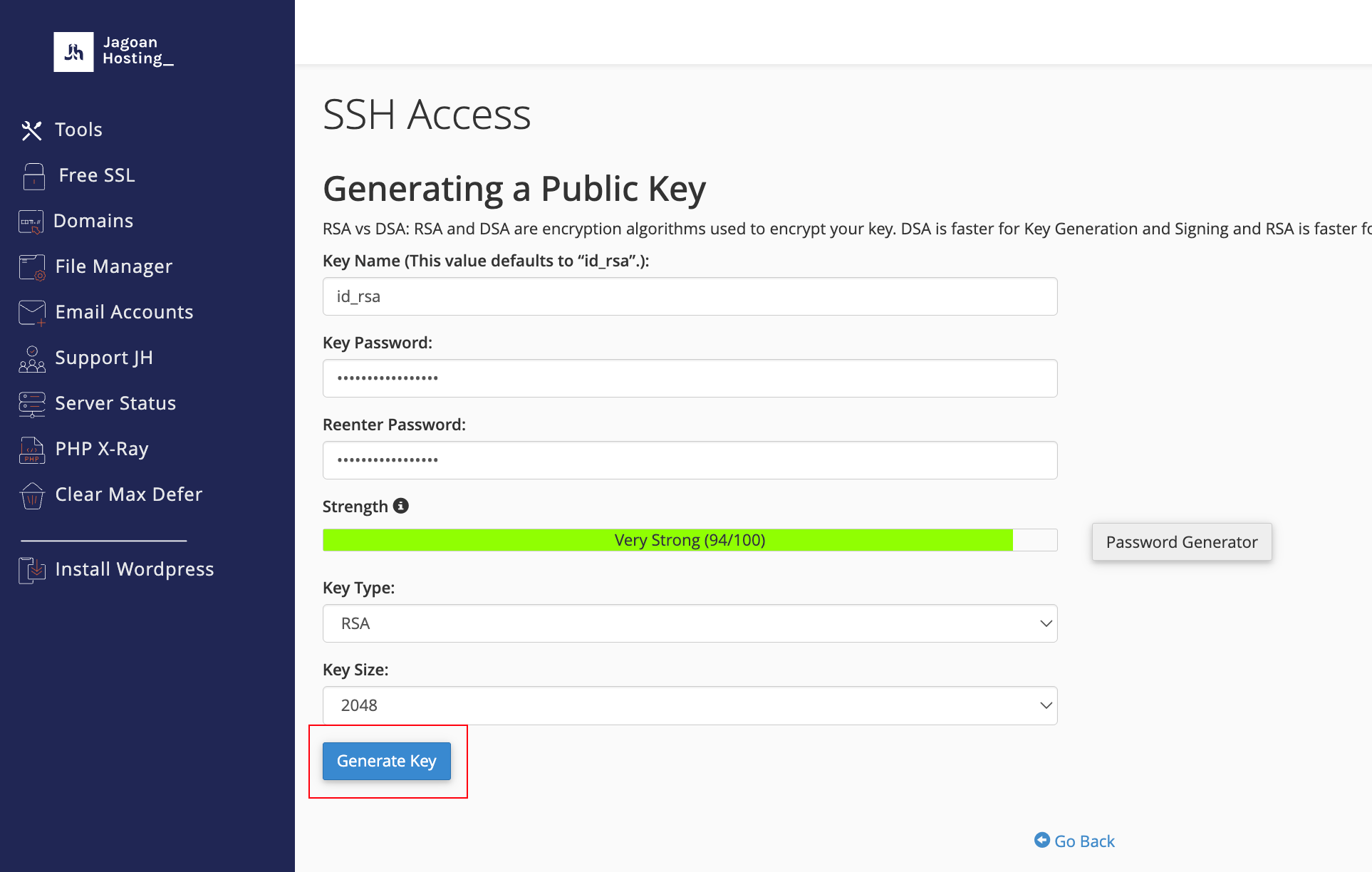 Key Name: Untuk defaultnya adalah id_rsa, namun bisa disesuaikan dengan kebutuhan Anda
