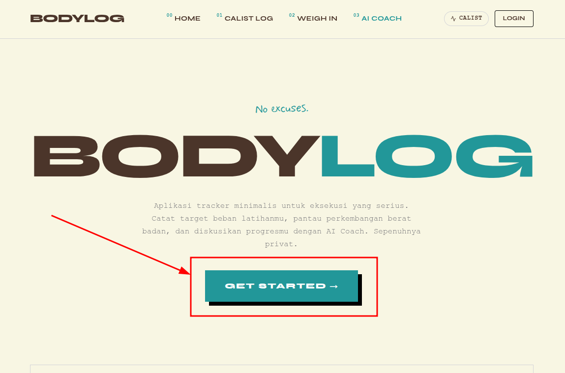 - Pilih mode latihan: GYM (alat berat) atau CALISTHENICS (bodyweight)