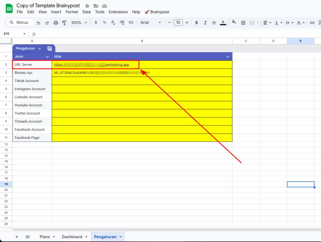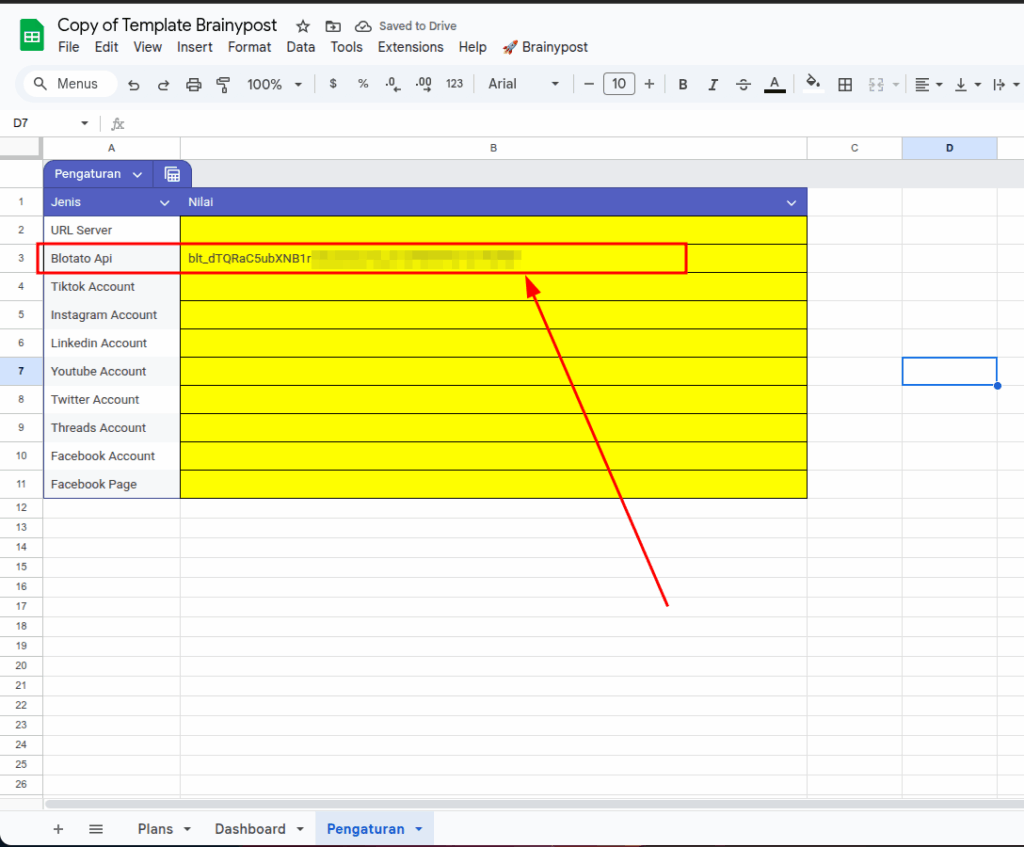 6. Kemudian langsung paste (ctrl + V) pada kolom Blotato API