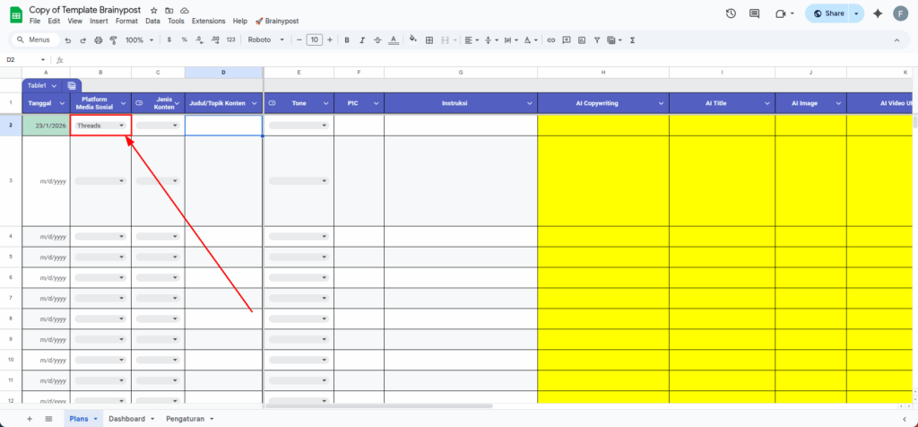 2. Isi tanggal pada kolom tanggal sesuai dengan kapan konten akan dibuat