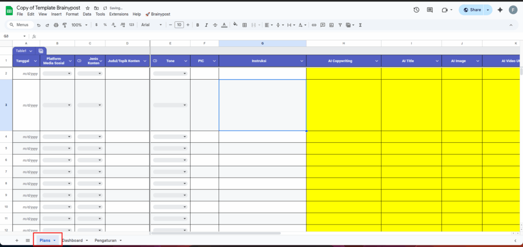3. Dan jika sudah membuat salinan template tersebut maka akan otomatis membuka halaman google sheet seperti berikut ini: