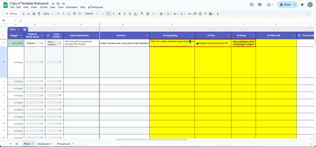 - Kolom AI Image (Terisi Otomatis) : Akan terisi URL dari gambar yang sudah di buat oleh AI