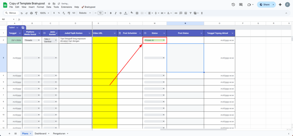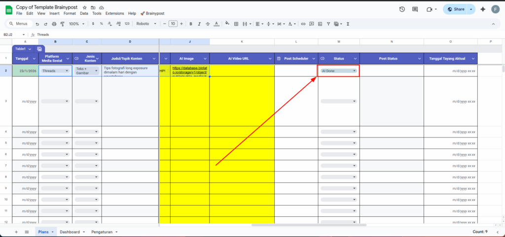 - AI Done : Status akan otomatis berubah jika konten sudah selesai dibuat