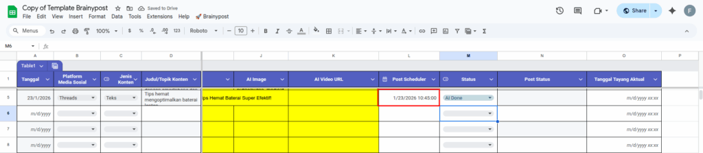 2. Isi kolom scheduler dengan format yang sama dengan tanggal tayang aktual. Contohnya seperti ini