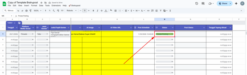 - Kolom AI Video URL (Terisi Otomatis : Akan terisi URL dari video yang sudah dibuat oleh AI