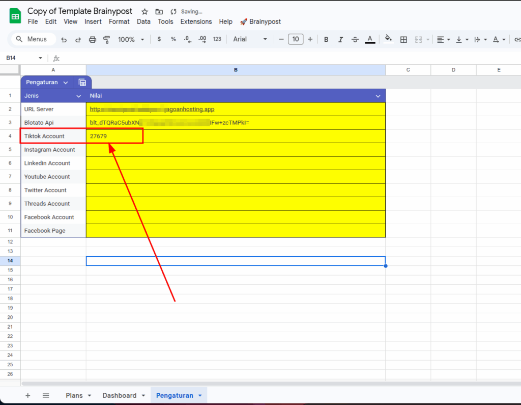 Langkah Ketiga : Menghubungkan Template Google Sheet ke Blotato