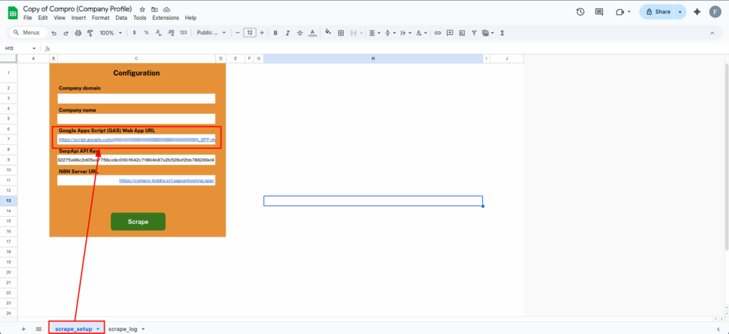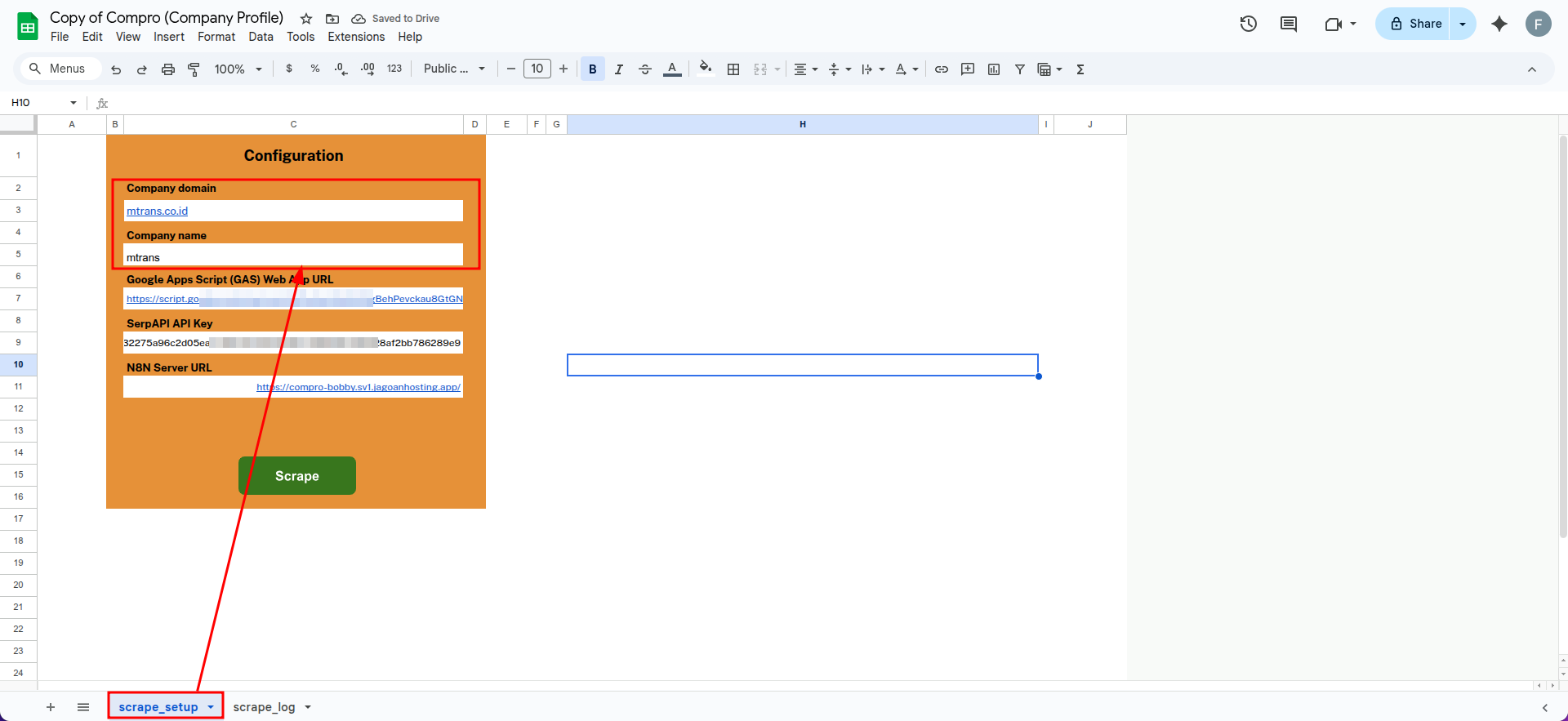 1. Masukkan nama domain dari perusahaan yang ingin kamu scrapet atau cari informasinya pada kolom company domain di sheet scrape_setup