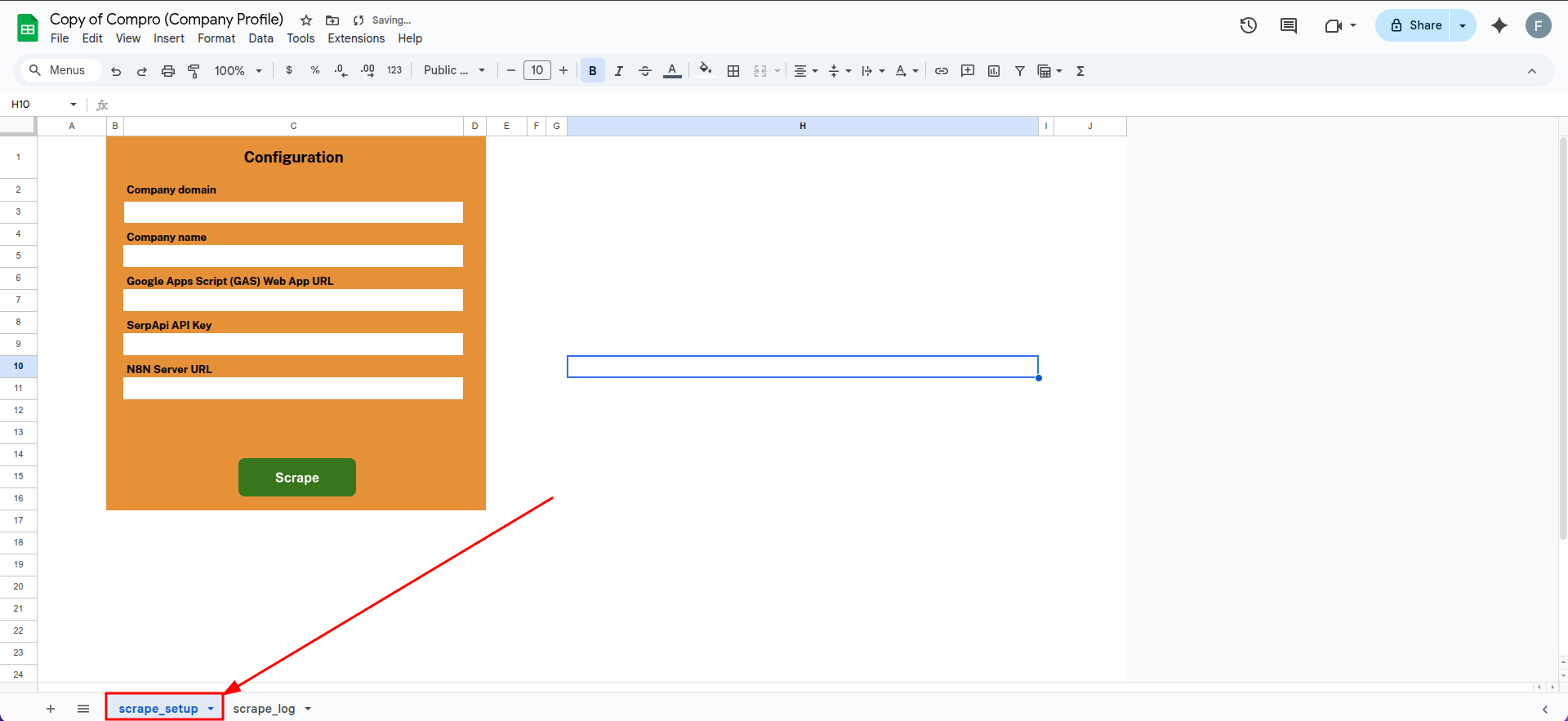 1. Buka spreadsheet yang sudah kamu duplicate tadi dan pilih sheet scrape_setup.