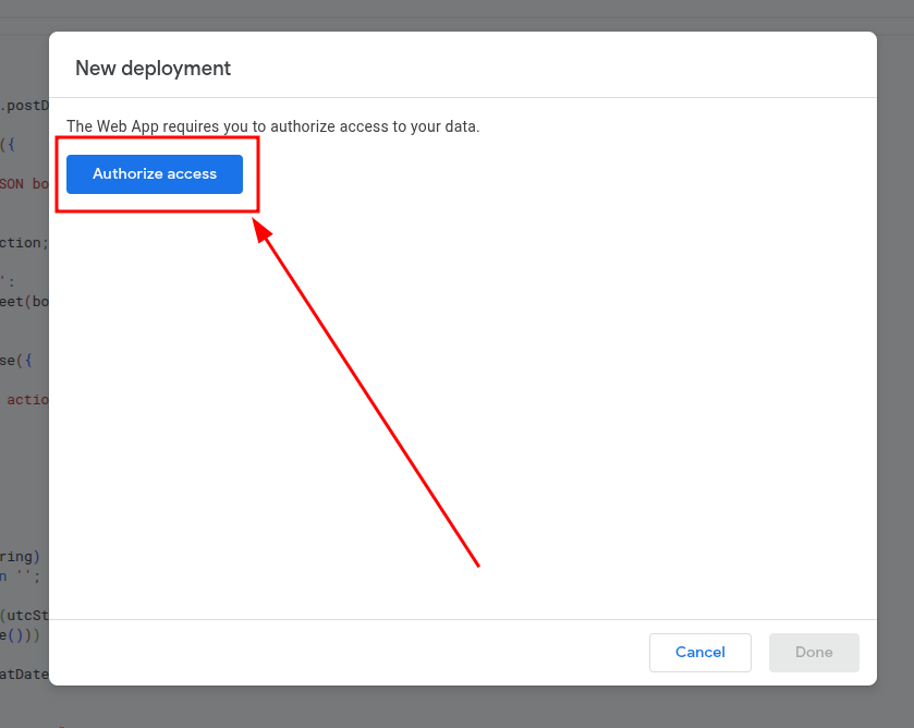 4. Selanjutnya berikan hak akses yang diperlukan apps script. Klik button authorize access
