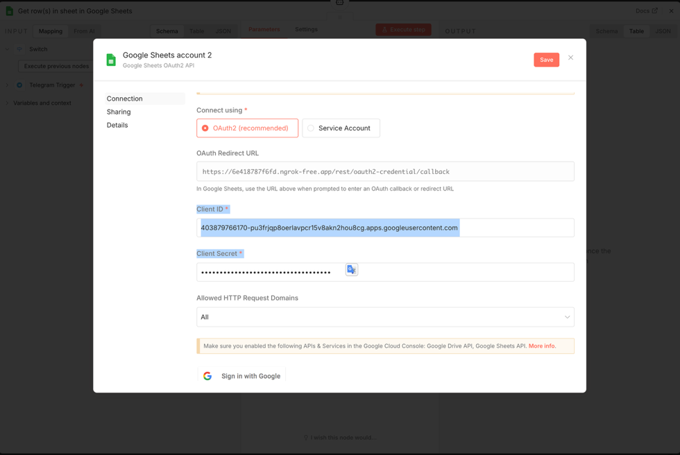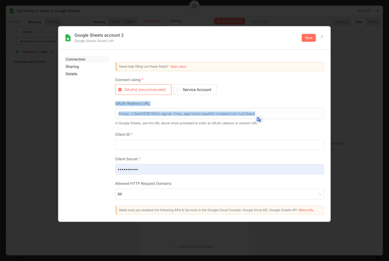 4. Buat credential baru menggunakan OAuth2 dan Masukkan Client ID & Client Secret