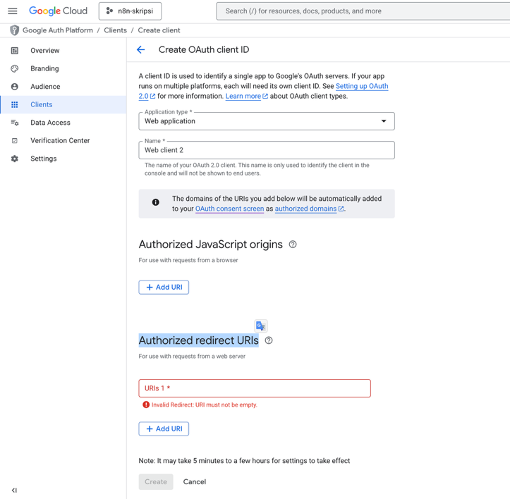 1. Masuk ke APIs & Services → OAuth consent screen → Clients