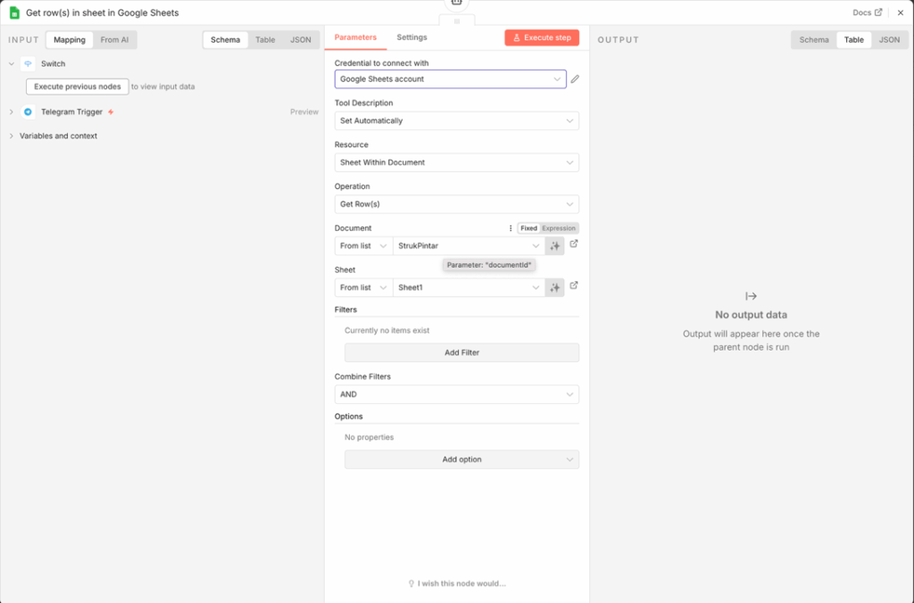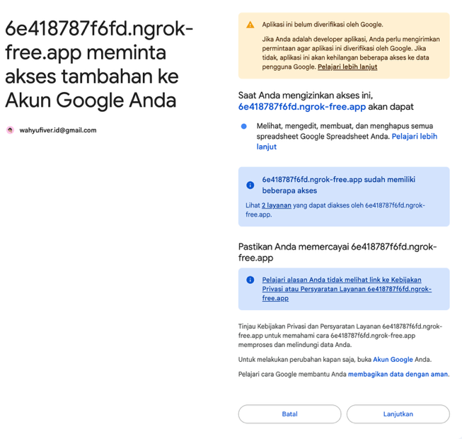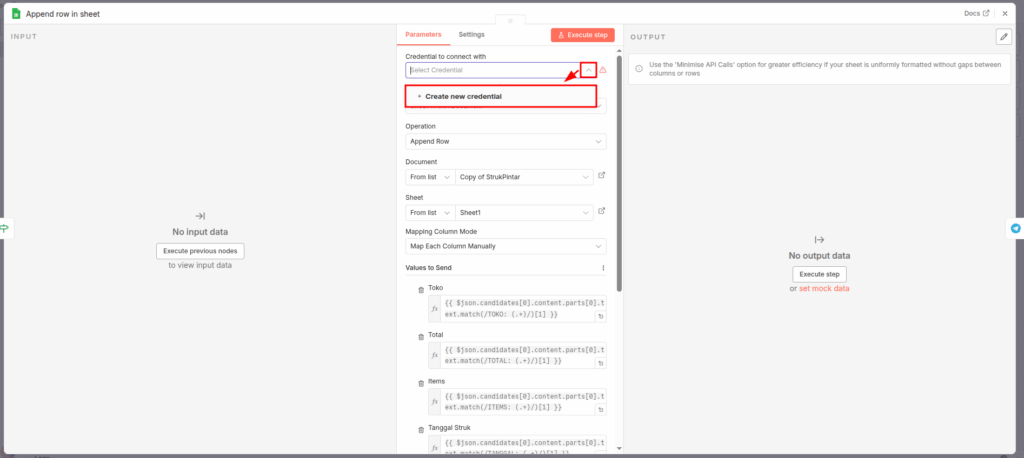 Langkah Keenam : Menghubungkan Google Sheet dengan Bot & n8n
