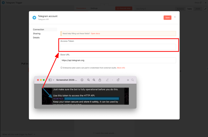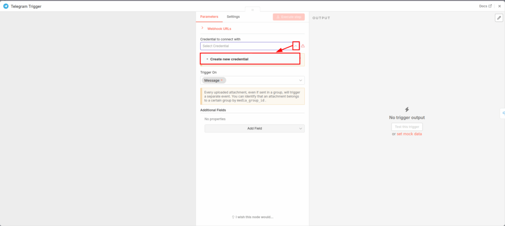 Langkah Keempat : Menambahkan Credential Bot Telegram di Workflow